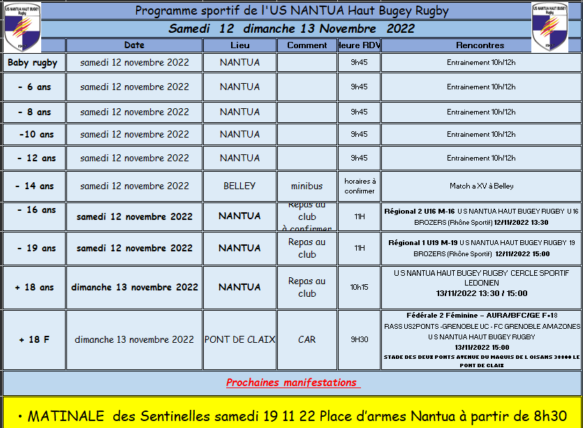 PROGRAMME SPORTIF - 12 - 13 NOVEMBRE 2022