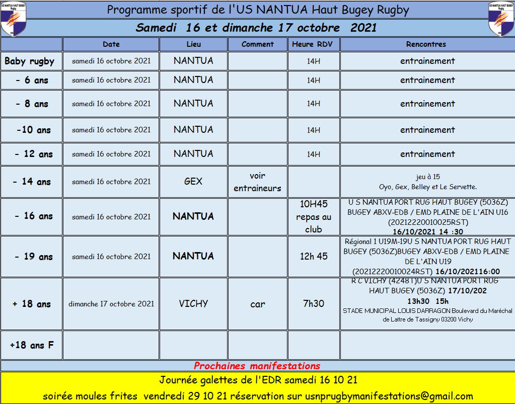 Programme sportif :16-17 octobre 2021