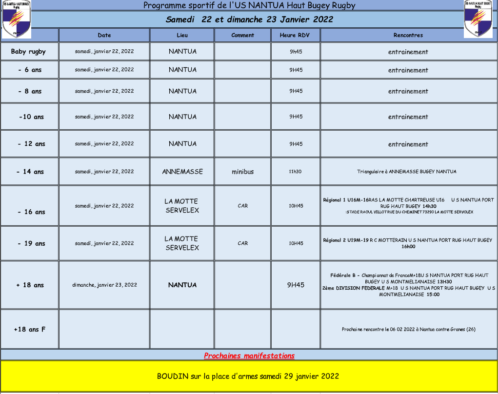 Programme sportif : 22-23 JANVIER 2022