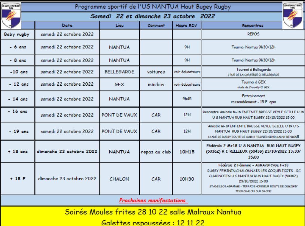 PROGRAMME SPORTIF - 22-23 OCTOBRE 2022