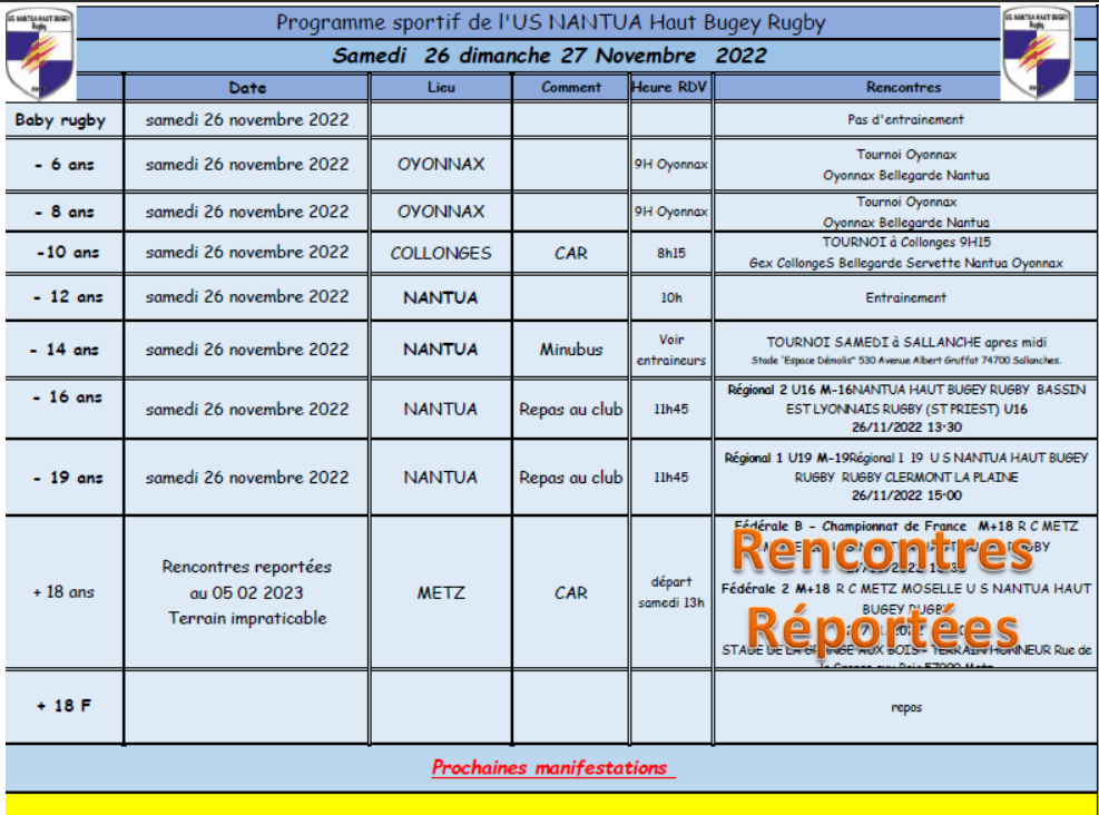 PROGRAMME SPORTIF - 26 - 27 NOVEMBRE 2022