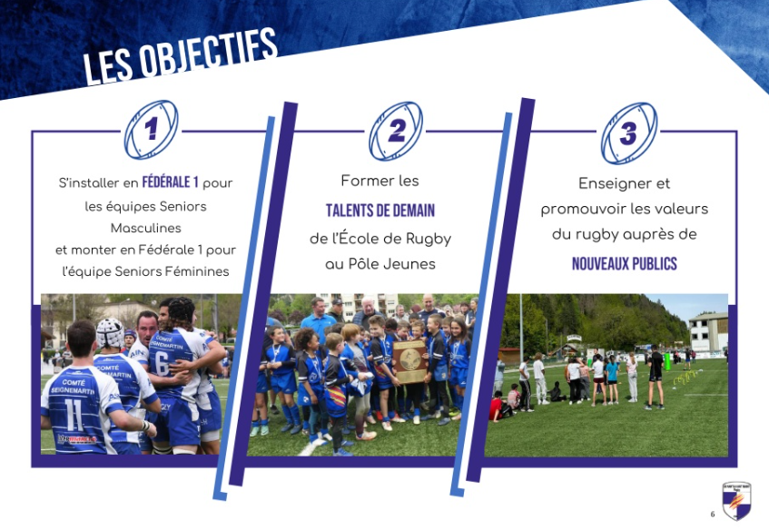 Notre club devient plus que jamais un acteur majeur de notre territoire et l'incarnation du meilleur niveau amateur, mais aussi une formation reconnue chez nos jeunes avec son Centre d'Entraînement Labellisé et son École de Rugby 2*.