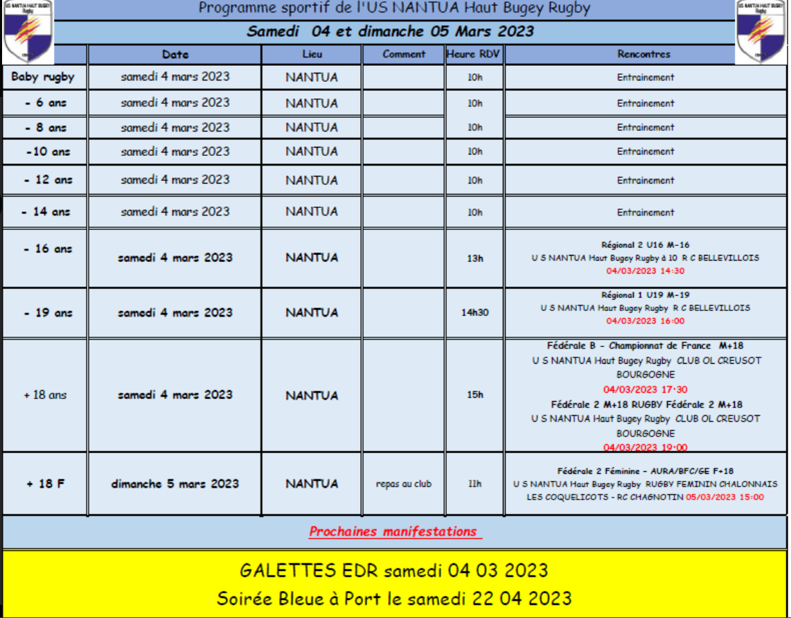 PROGRAMME SPORTIF - 4-5 MARS 2023