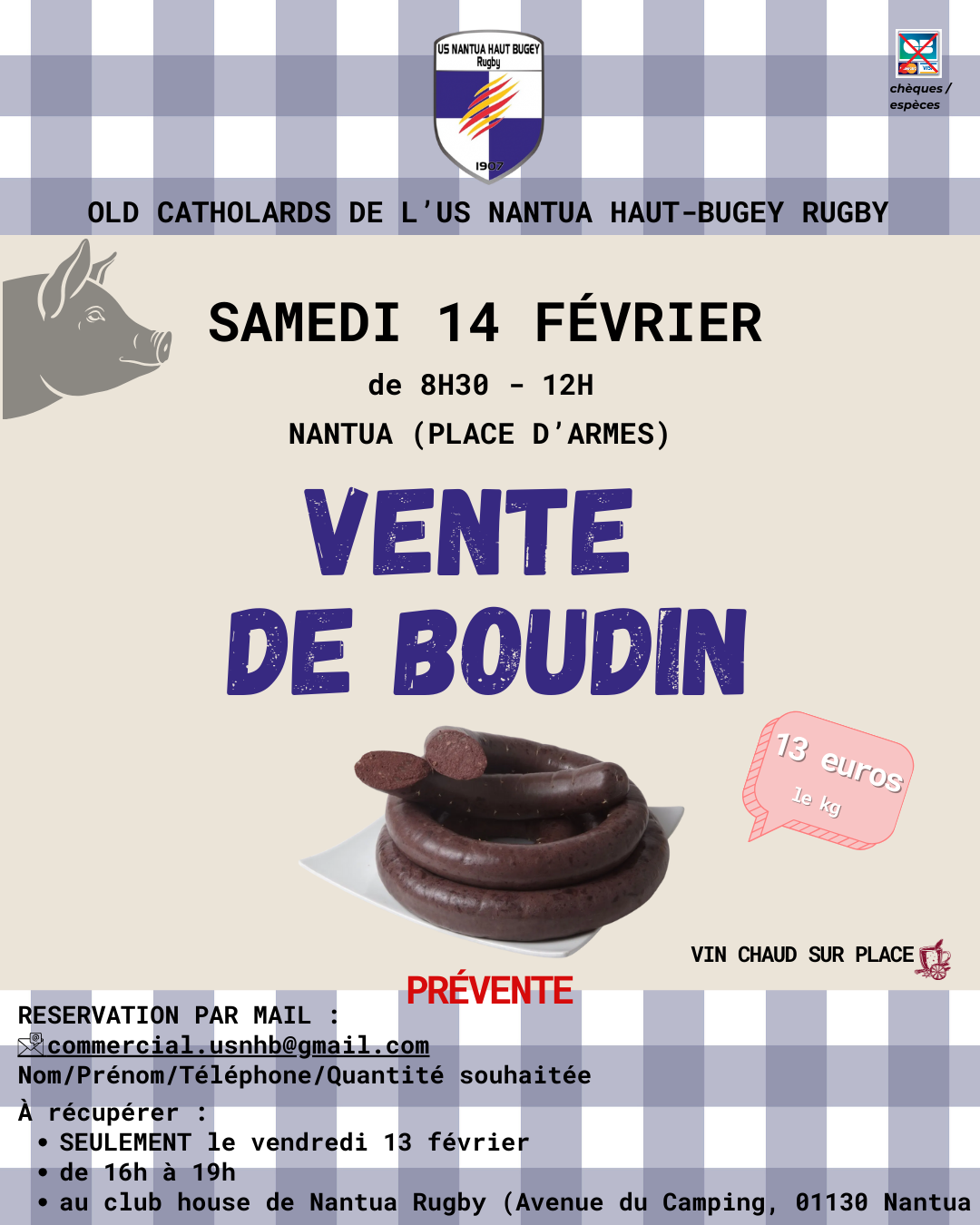 BONNE NOUVELLE, nos Old Catholards de l’US Nantua fixe une nouvelle date pour leur traditionnelle vente de boudin noir !