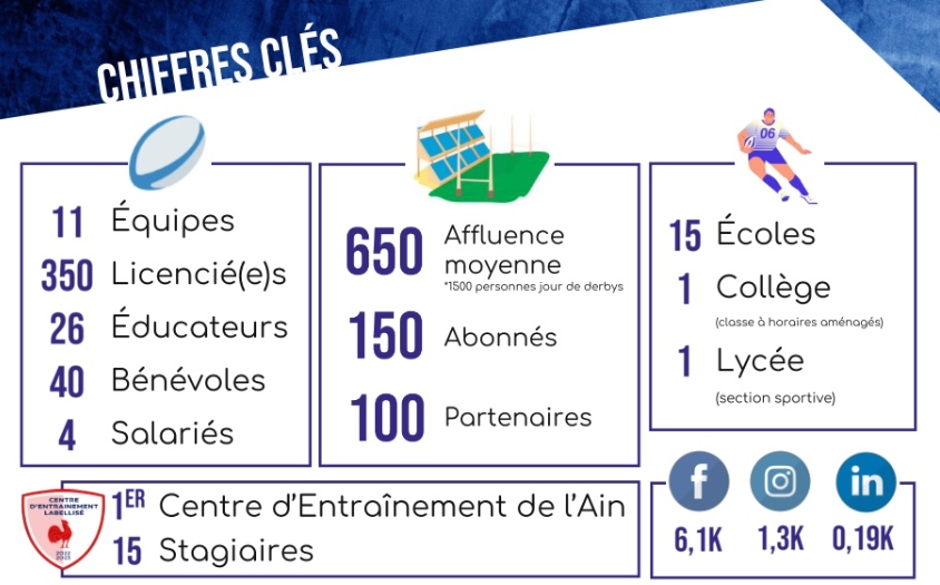 Notre club devient plus que jamais un acteur majeur de notre territoire et l'incarnation du meilleur niveau amateur, mais aussi une formation reconnue chez nos jeunes avec son Centre d'Entraînement Labellisé et son École de Rugby 2*.